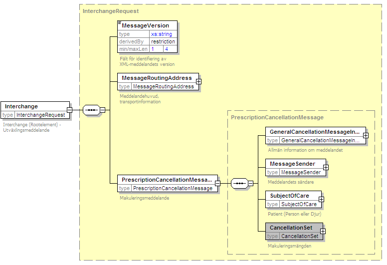 Makuleringsmeddelande (PrescriptionCancellationMessage) refererar till ett förskrivningsoriginal som ska makuleras.