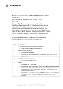 1.Val av ordförande, sekreterare och justeringsperson 2.Godkännande av dagordning 3.Föregående protokoll 4.Genomgång av aktuella åtgärdspunkter 5.Anmälda ärenden a) Statusrapportering arbetsgrupp informationslokalisering och tjänsteadressering,