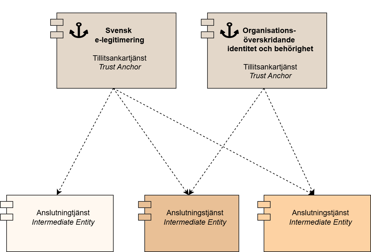 På så sätt kan olika tillitsankartjänster och federationskontexter samexistera – men alltid inom ett gemensamt tekniskt ramverk.