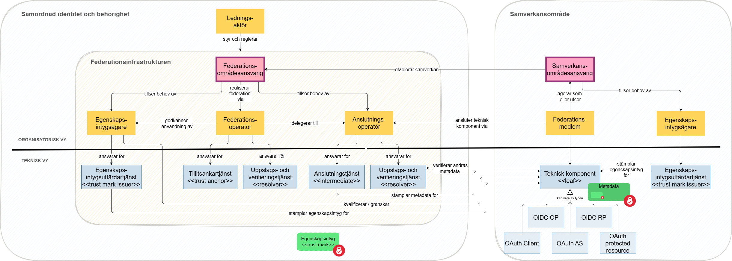Översiktsvy över den organisatorisk och tekniska infrastrukturen inom Samordnad identitet och behörighet