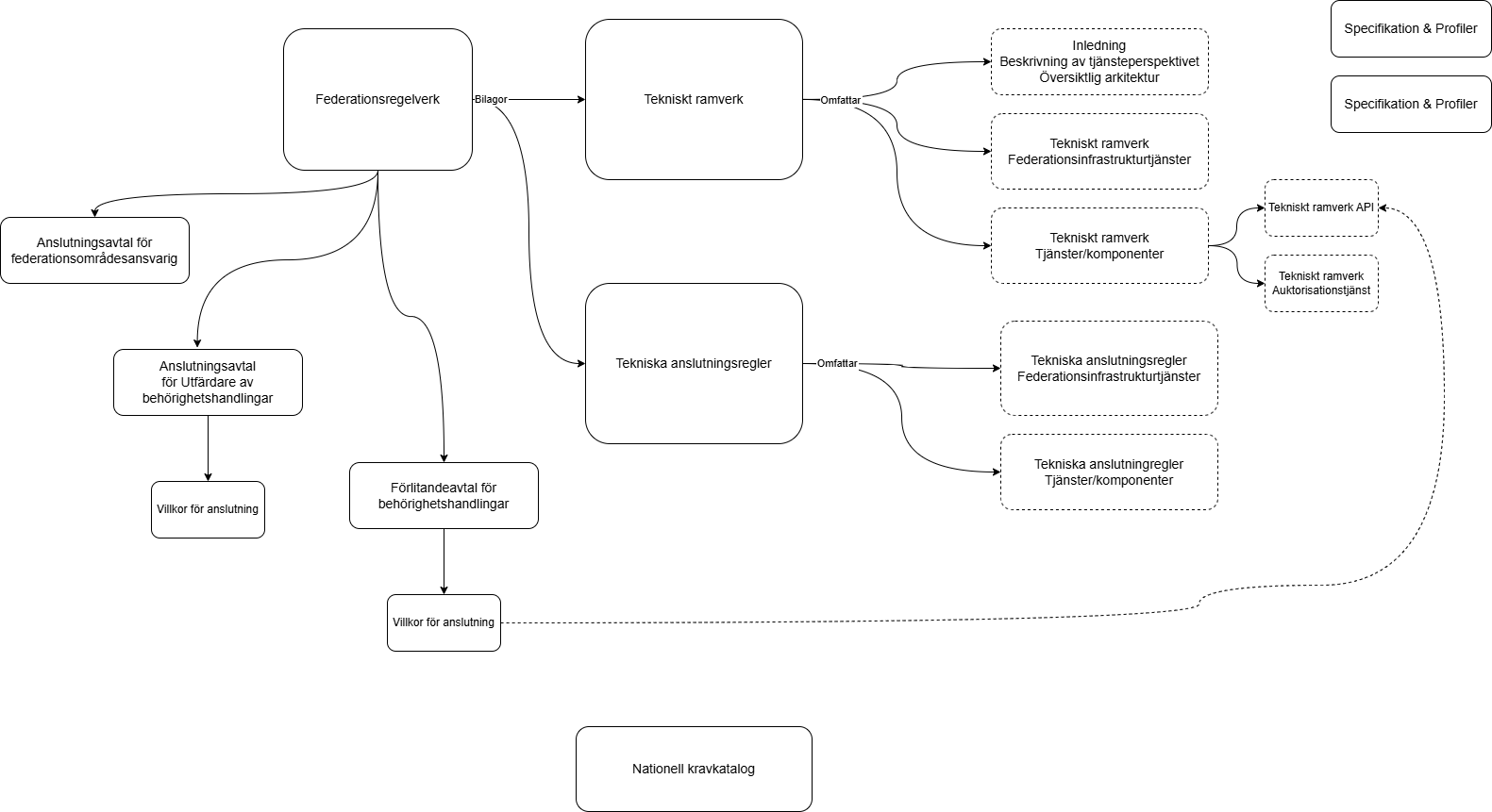 Det tekniska ramverket beskriver de normativa tekniska kraven för Behörighetsinfrastrukturen och reglerar: