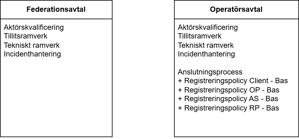 Normerar: vad som gäller, vilka gemensamma tekniska krav som gäller i federationskontexten, men uttryckt teknikneutralt (t.ex. “stark autentisering”, “spårbarhet”, “nyckelhantering”, “metadata-kvalitet”).