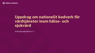 Arbetsgruppens syfte är att förvalta och vidareutveckla Snomed CT-urval för att ange erbjuden vårdtjänst inom hälso- och sjukvården.