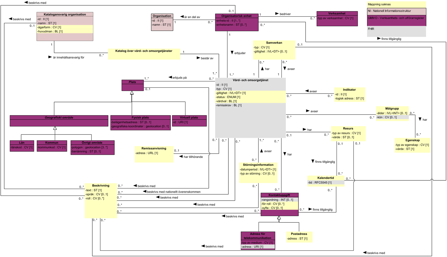 • Enligt informationsmodellen ser det ut som att en vård- och omsorgstjänst är unik för en specifik enhet. Är det korrekt uppfattat och varför är det så?