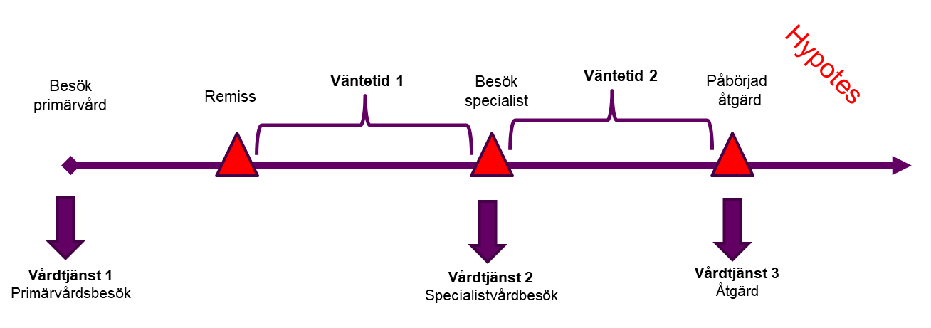 Väntetider bör beräknas mellan två mätpunkter för ett vårdkontakts-id