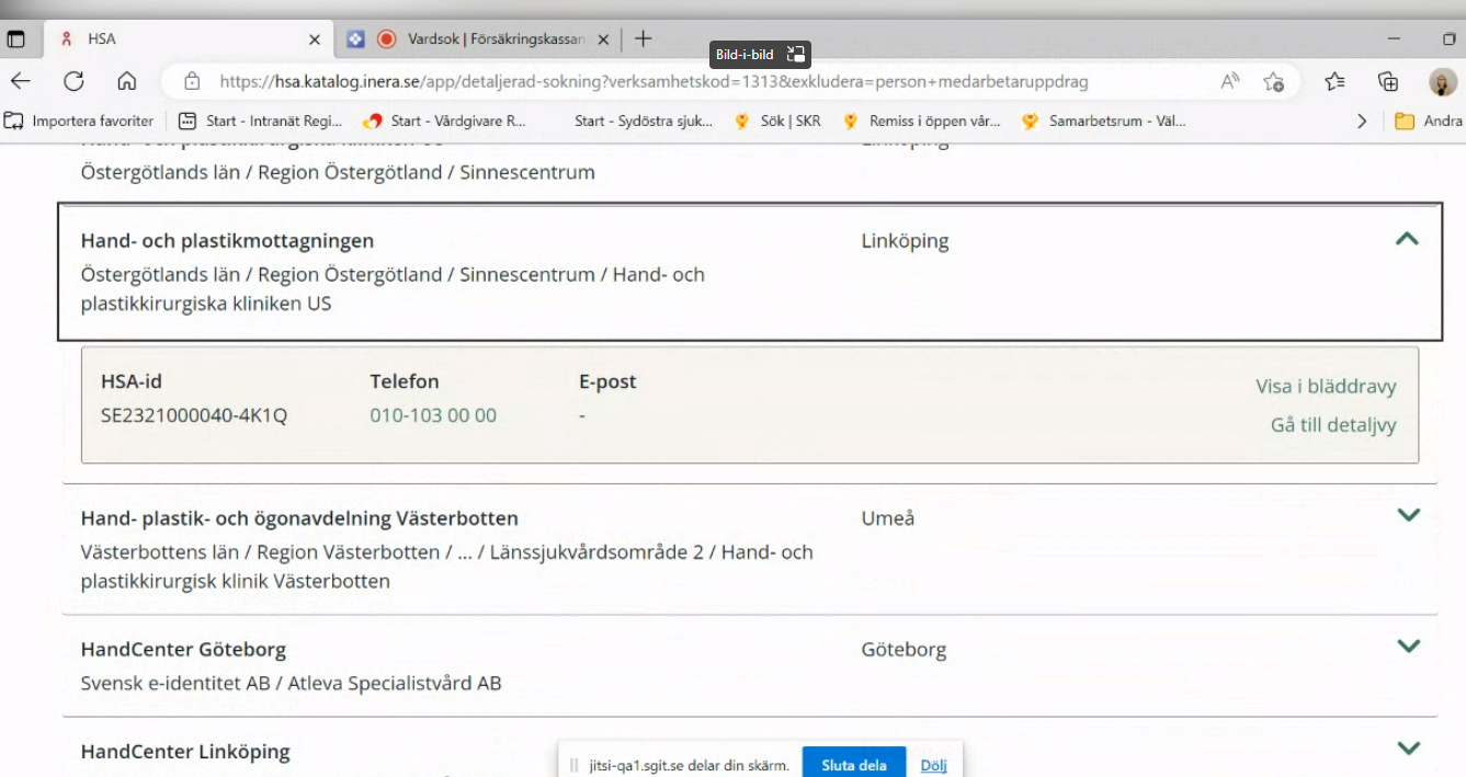KS: På 1177 kan man se "relaterade mottagningar" för att ta sig vidare till andra ute i Sverige. Används ofta i hänvisning.